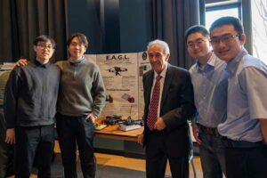 Zhao says his senior year capstone project, with Professor Bahram Shafai, was deeply fascinating and one of his favorite projects during his time at Northeastern. Zhao and his group developed and built a drone system integrating both hardware and software to achieve autonomous flight and rescue. With the primary functions of the drone intended as a search and rescue tool for real-world emergency situations, they developed it to have localization accuracy features by implementing multi-sensor fusion and ultrasonic arrays for robust victim detection. Zhao and his team had to conduct over 100 field tests to validate the system performance of the drone. Zhao immensely enjoyed developing this project and is proud of the work his group was able to accomplish.