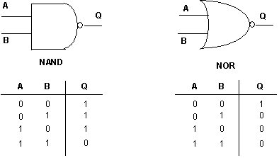 Figure 6. NAND and NOR gate symbols and truth tables.