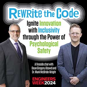 Fireside Chat on the Power of Psychological Safety with Award-Winning Engineer and Industry Consultant Dr. Mark McBride-Wright and Northeastern’s College of Engineering Dean Gregory Abowd.