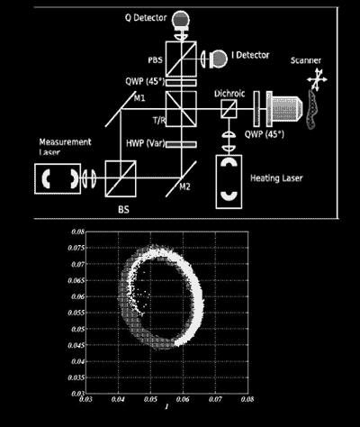 Research OverviewThis research is in collaboration with Prof. Gregory Kowalski in the Department of Mechanical and Industrial Engineering. The current method of cancer detection in human skin is a time consuming and often painful process. The skin is biopsied, frozen then viewed under a scanning confocal microscope. This process is repeated a number of times if necessary. My research seeks to define a non-invasive means of imaging the skin through measurement of the Doppler shift of the skin due to thermal expansion. A heating laser will be applied to an area while a scanning laser system images the area. Expansion of the material due to heating causes a change in optical path length of the light through the material. The change to optical path length occurs from the change in the index of refraction and from the physical displacement of the material. Dissimilar materials exhibit different expansion properties and thus different changes in their index of refraction. These changes can be detected by comparing the reflected beam from the scanner to its reference. The information obtained through the thermoelastic expansion of the material will define a non-invasive means for imaging skin and characterize the mechanical properties of tissue and tumor, the latter of which are not well defined. For more information, contact Jason Kellicker Optical Science LaboratoryThis research project is part of the work at the Optical Science Laboratory of Chuck DiMarzio in the Department of Electrical and Computer Engineering at Northeastern University. For other projects see Optical Science Lab Research Page.