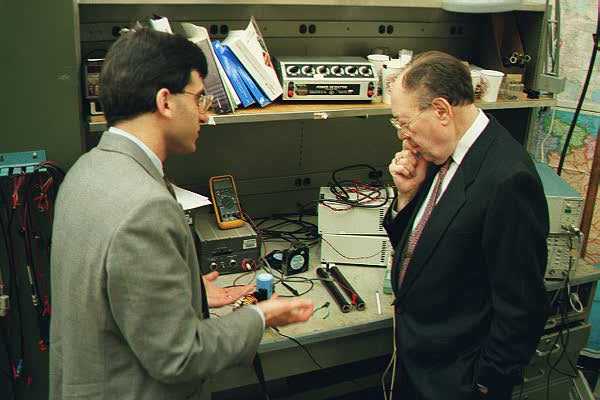 Dr. Brad Lehman (left) with Professor Jay Forrester, IEEE Medal of Honor recipient for the invention of manetic core computer memory (Professor Emeritus at MIT). taken 10/17/97