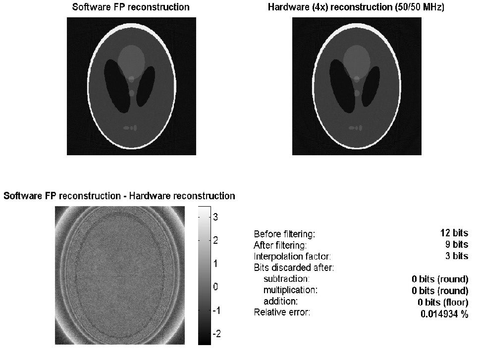 Backprojection result: Software floating point vs. Hardware fixed point