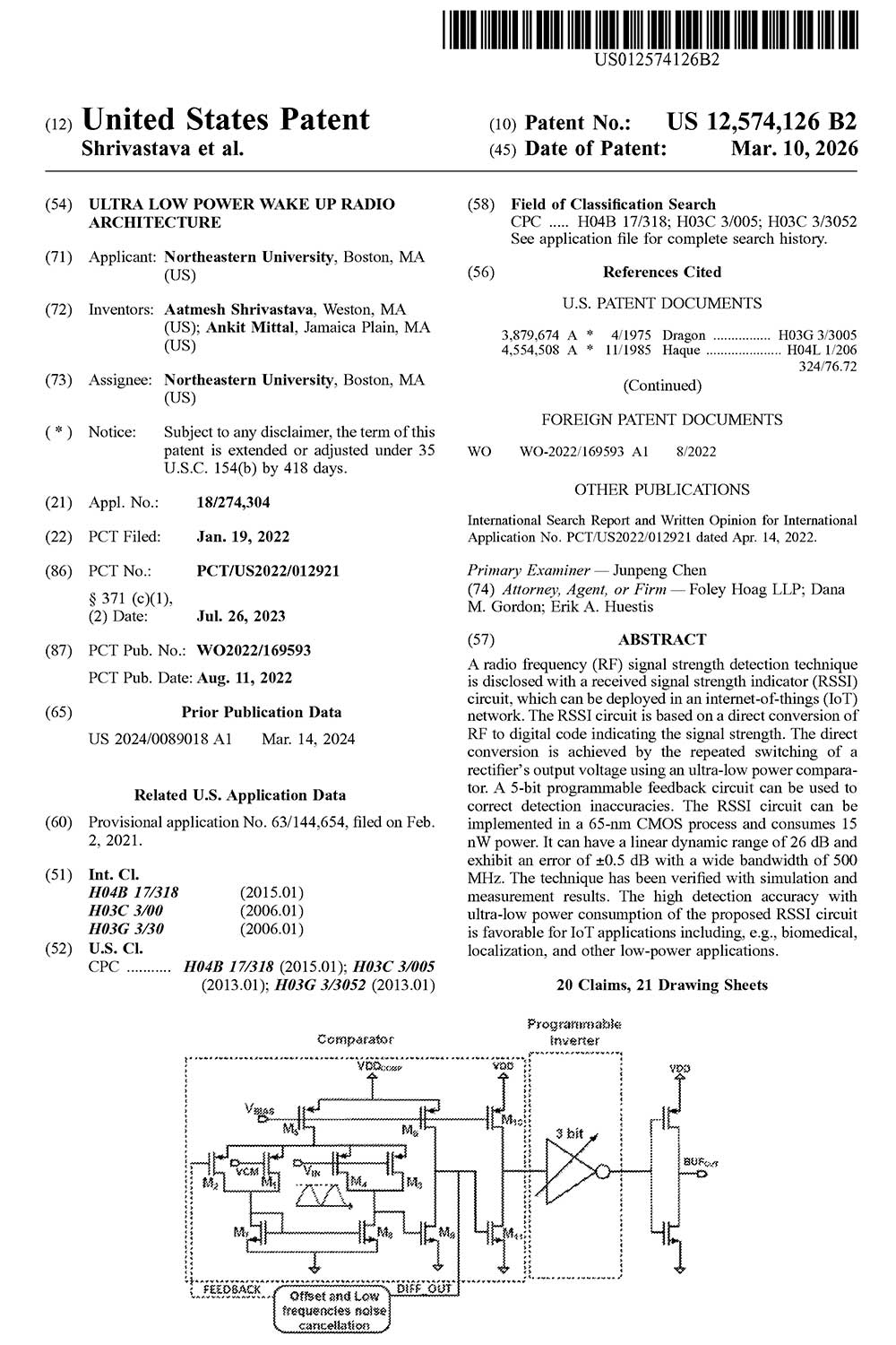 ECE Associate Professor Aatmesh Shrivastava was awarded a patent for designing an “Ultra low power wake up radio architecture.”