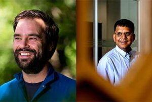 Professors Samuel Munoz and Auroop Ganguly say when Helene slammed into North Carolina’s mountains it unleashed a perfect storm of flooding and infrastructure collapse. Photo by Alyssa Stone/Northeastern University and Photo by Matthew Modoono/Northeastern University